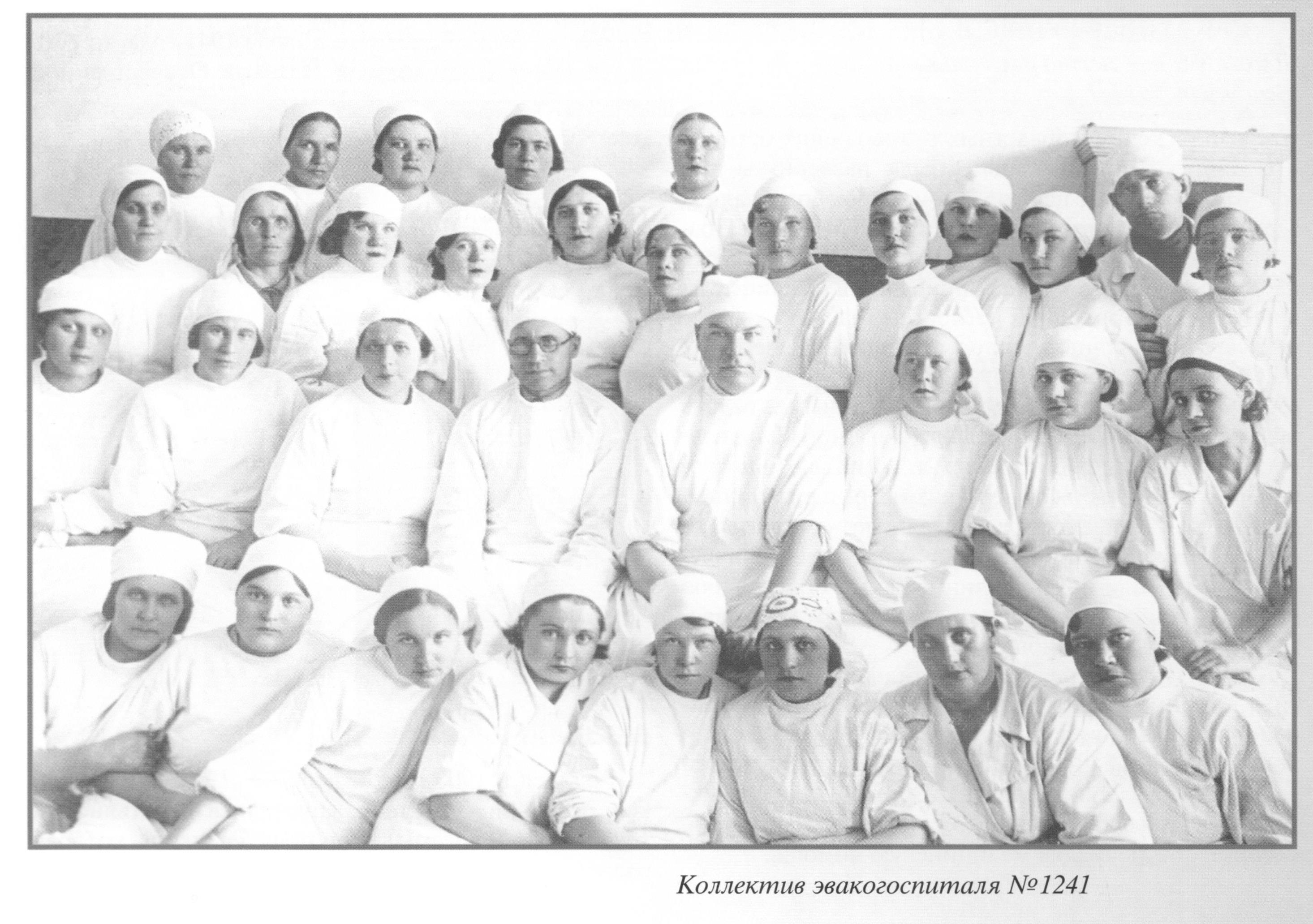 В июле 1941 г. в зданиях общежития педагогического института, школ № 11, № 12 и № 17 Молотовского района г. Новокузнецка стал функционировать сортировочный эвакогоспиталь № 1241 на одну тысячу общехирургических мест. Начальником его был военврач III ранга И. Р. Виноградов (с 1943 г. начальник отдела эвакогоспиталя Кемеровской области), заместителем по медицинской части — опытный городской врач 3. Е. Завалишина, военным комиссаром — Никулин. Начальниками 12 медицинских отделений были назначены местные врачи из выпускников Томского мединститута. Среди них: Н. Н. Смирнов, Г. Г. Максименко, 3. Е. Крылова, А. С. Горлова, В. А. Тихонова, Л. Ф. Тунина, Ф. Н. Шаталин и другие. Средний персонал составляли молодые медицинские сестры из Томска, Кемерова, Сталинска. В штате из 394 человек числилось более 20 врачей, 100 медсестер и 120 санитарок. Значительную помощь в ремонте корпусов оказали шефы — рабочие Кузнецкого металлургического комбината, номерных заводов № 252 и № 526, алюминиевого завода, ОСМЧ-3, швейной фабрики, абагурского лесокомбината и др.