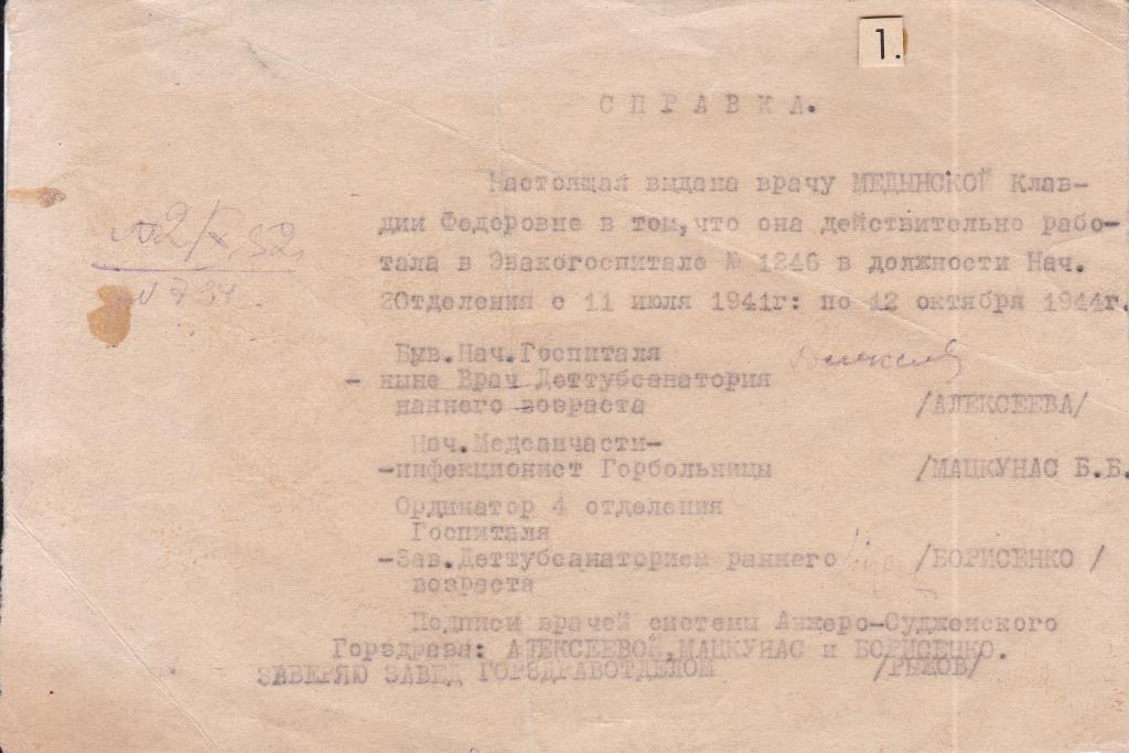 В июле 1941 года в Анжеро-Судженске был сформирован госпиталь № 1246 на 500 общехирургических и терапевтических мест. Госпиталь имел 3 медицинских отделения и был размещен в здании горисполкома, школы № 11 и Дома техники.
